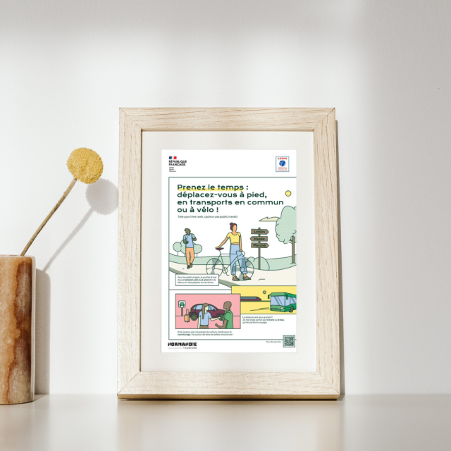 - 1 affiche régionale sur les gestes simples en matière de mobilités alternatives – en français et en anglais