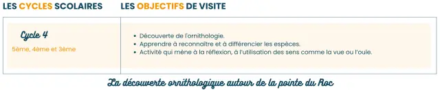 La découverte des sentiers du Roc permettra aux élèves de s’envoler à la recherche des espèces riches et diversifiées d’oiseaux qui se cachent tout au long du chemin.