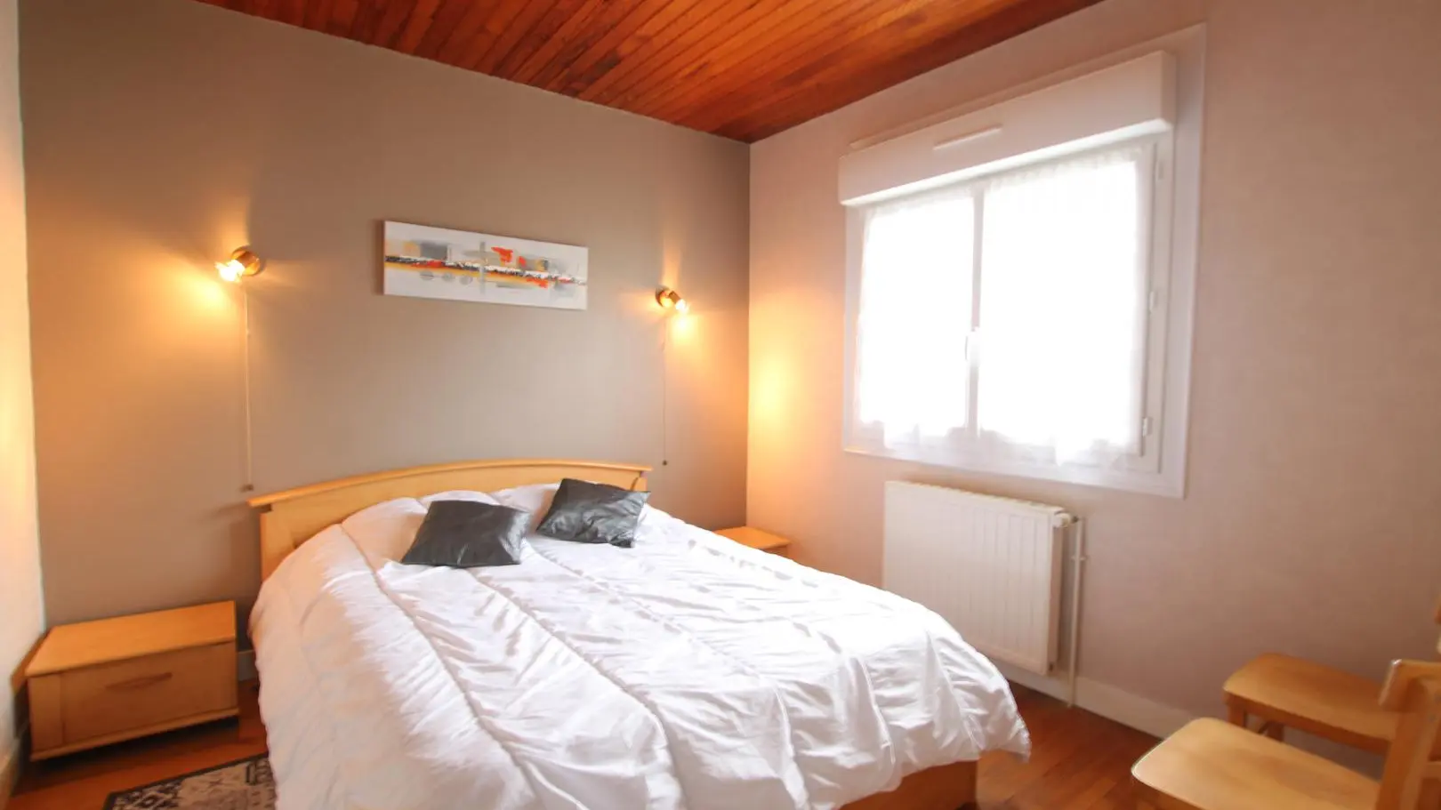 Villa indépendante entièrement en rez-de-chaussée. Séjour. Cuisine aménagée. Chambre 1 : 1 lit 140. CH 2 : 1 lit 140. 1 lit d'appoint (1 personne). Salle d'eau. Wc. TV. Lave-linge. Réfrigérateur-congélateur. Lave-vaisselle. Draps et linge de maison non fournis. Chauffage gaz. (1 m3 inclus par jour. 0.85 € m3 supplémentaire). Terrain clos privé. Terrasse. Salon de jardin. Barbecue. Garage (le reste du sous-sol n'est pas mis à disposition).