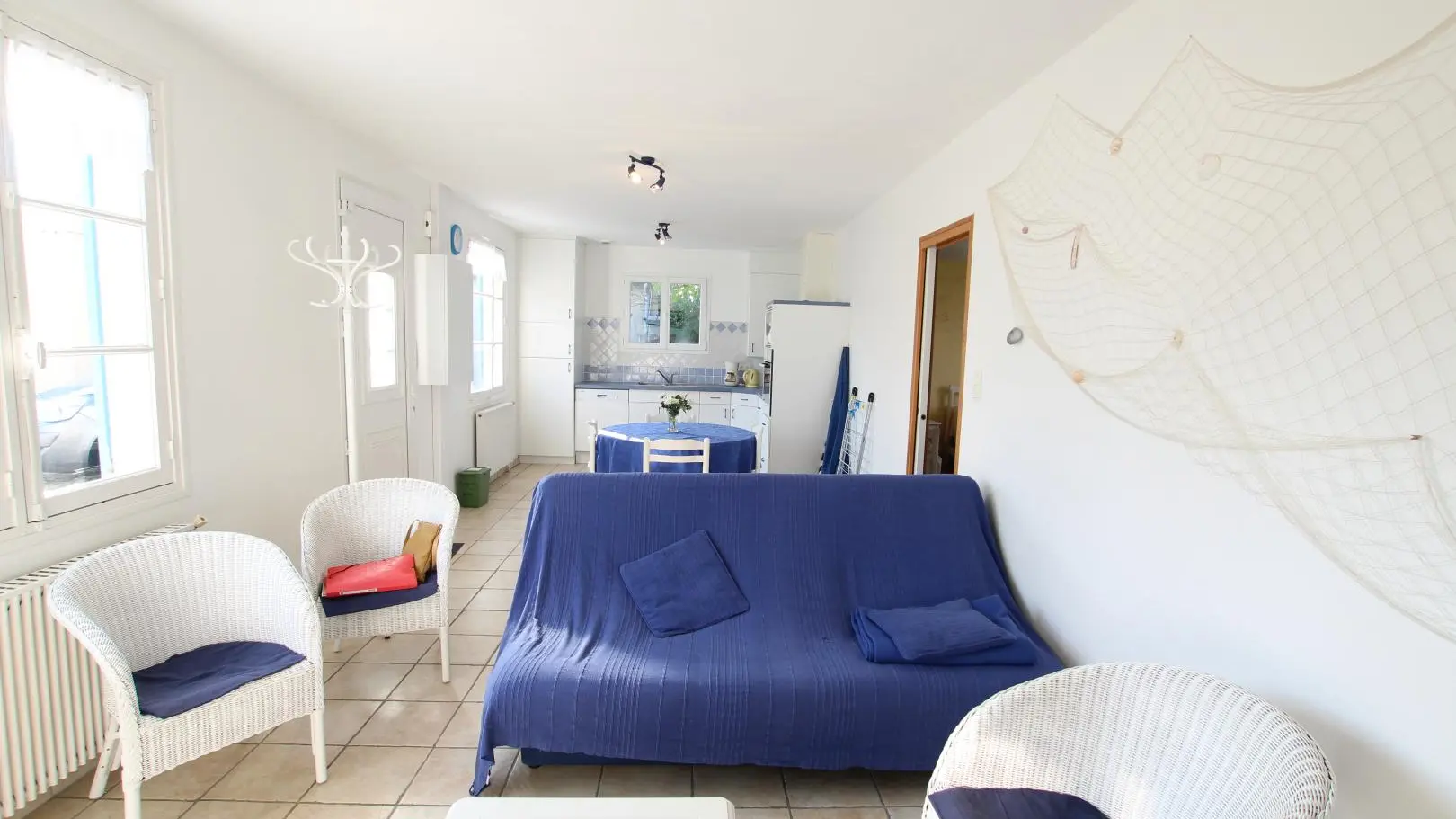 Maison indépendante entièrement au rez-de-chaussée. Séjour. Coin-cuisine. Chambre 1 : 1 lit 140. CH 2 : 2 lits 90. Salle d'eau. WC. TV. Lave-linge. Lave-vaisselle. Draps et linge de maison non fournis. Service ménage en supp. Chauffage central en supplément. Cour close privée avec abri de jardin fermant à clés. Salon de jardin. Barbecue. Parking.