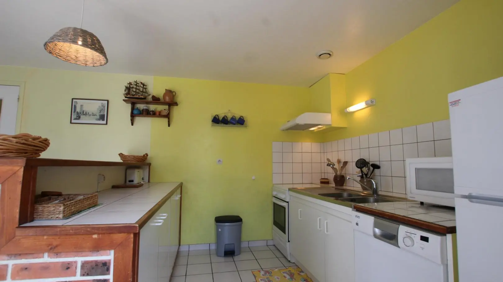 Maison indépendante. Rez de chaussée : Séjour avec coin salon (TV écran plat. Cuisine (cuisinière avec plaque induction et four électrique), micro-onde, lave-vaisselle). Salle d'eau (lave-linge). Wc indépendant. . Etage : Chambre 1 (1 lit de 140x190). Chambre 2 (1 lit de 140x190). Chambre 3(2 lits de 90x190). Lit bébé. Chaise haute. Lecteur DVD. Accès Wifi. Draps en location. Linge de maison en location. Service ménage en supplément. Chauffage électrique en supp. . Terrain non clos privé. Cour close privée. Salon de jardin. Barbecue.